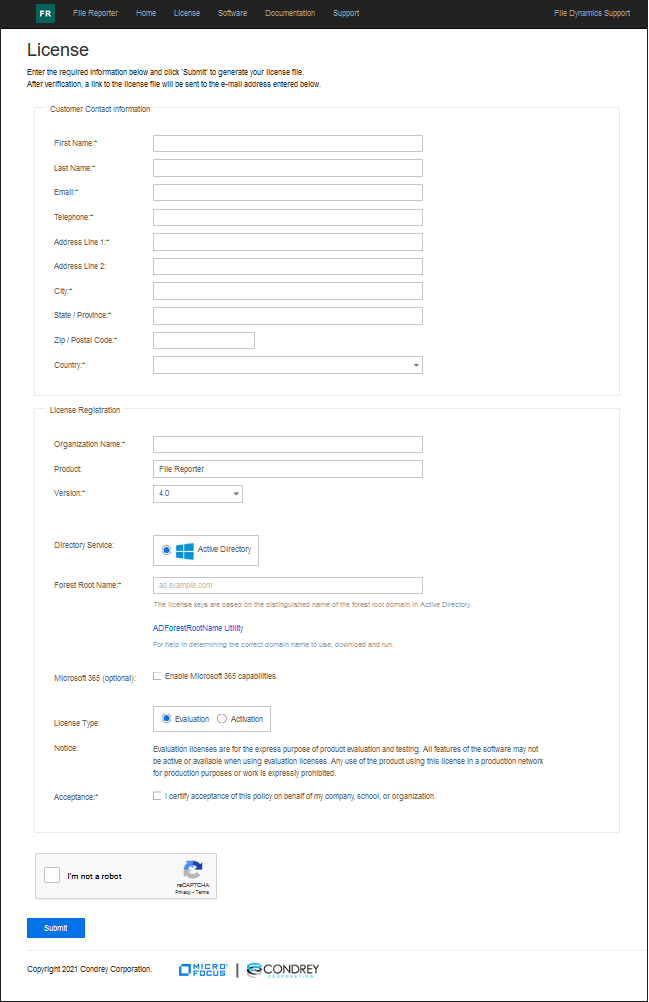 Micro Focus File Reporter requires a production license file or evaluation license file that you obtain from Micro Focus.