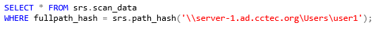 Useful for finding a fullpath in the srs.scan_data table using the fullpath_hash index.