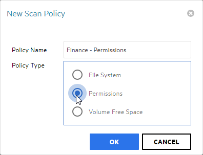 Policy Type: Select Permissions to configure the scan policy for collecting file system access data.