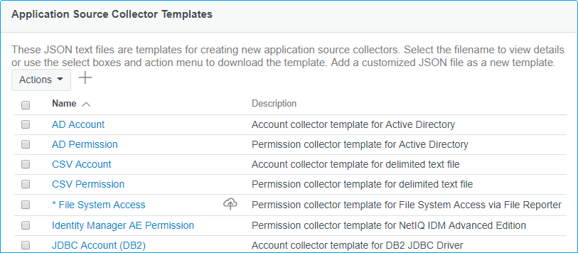 In Identity Governance, select Configuration > Application Source Collector Templates.