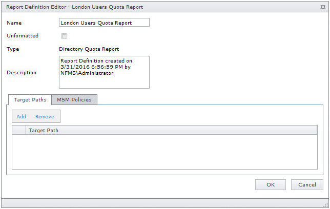 Click the > to browse to and select the file paths you want included in the report, then click OK.