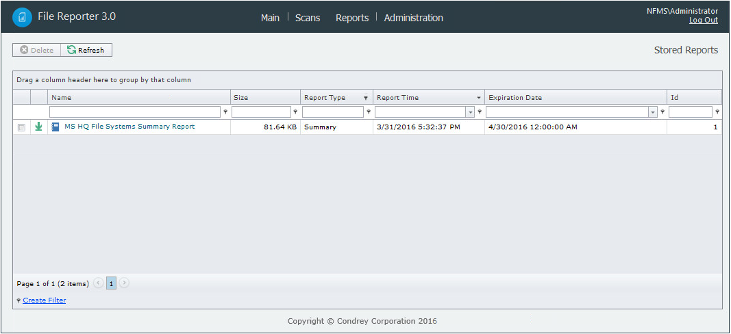 Generate the report in Stored mode by following the procedures under Generating a Stored Report.