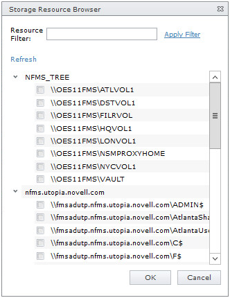 Select the volumes and shares you want File Reporter to be able to scan and click OK.