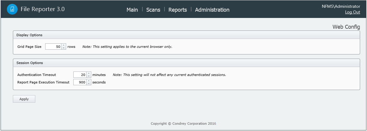 After 20 minutes of inactivity in the administrative interface, you are required to log in again. You can adjust this setting and specify the number of items displayed per page through the Web Config page.