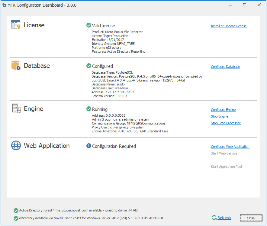 If you have installed the Engine and Web Application on a server that is not in a domain, the following page appears: