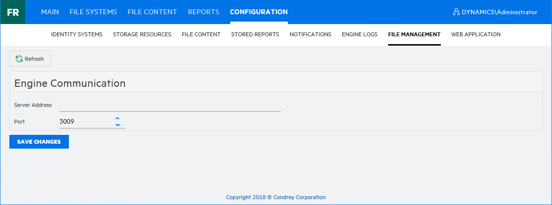If you have Micro Focus File Dynamics or Micro Focus Storage Manager deployed, you can use Micro Focus File Reporter to report on File Dynamics or Storage Manager policies. Before you can do so, you must first specify the server address and port number of the server hosting the File Dynamics or Storage Manager Engine.