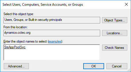 If you create a new folder for the stored reports, you must assign Read and Write access for the associated Windows server/proxy account to that folder, as well as the AppPool Identity. Because you cannot browse for the AppPool Identity, you need to use the name of the AppPool itself: