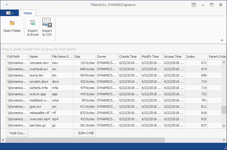 In the Filters region of the Dashboard, deselect one or two of the check boxes and observe how the changes are reflected in the Summary Data, Top Extensions by Size, and Summary regions of the Dashboard.
