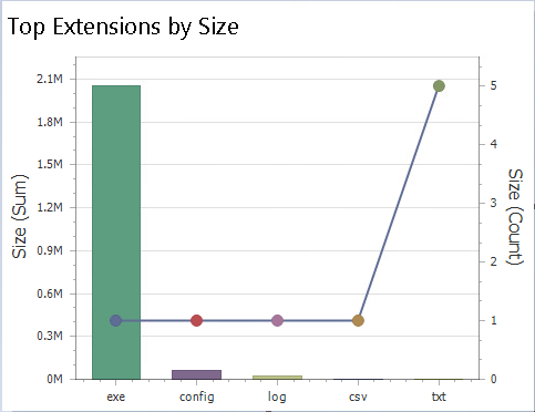 In the Top Extensions by Size region, place the cursor over one of the bars and observe how sectional-specific information appears in a balloon.