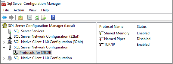 Click Protocols for SRSDB (or the name of the database instance you chose earlier).