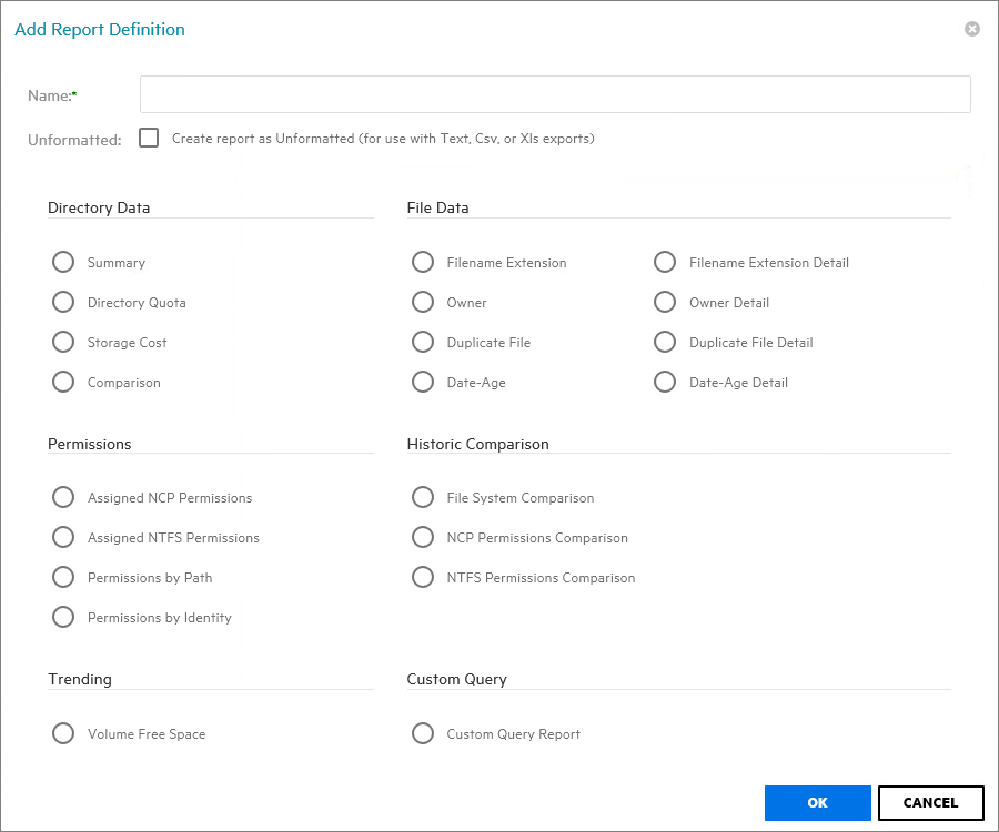 Before generating any type of Directory Data report, you must first conduct a File System scan on the volumes or shares you want to report on.