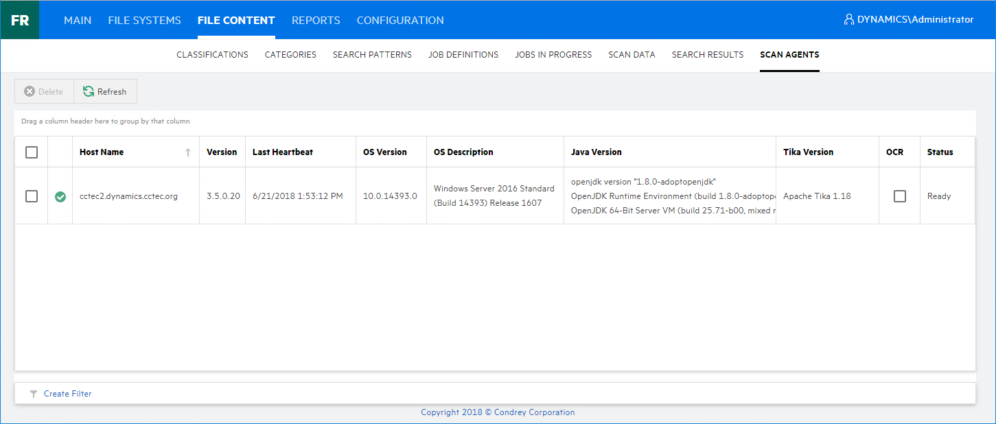 You can view the version, and the last heartbeat for each deployed AgentFC by selecting File Content > Scan Agents.