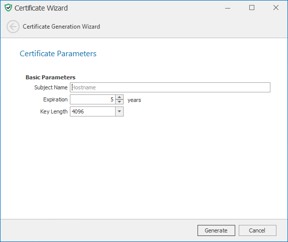 File Name: The default name and path of the certificate to be generated. If you choose, you can modify the name and path.