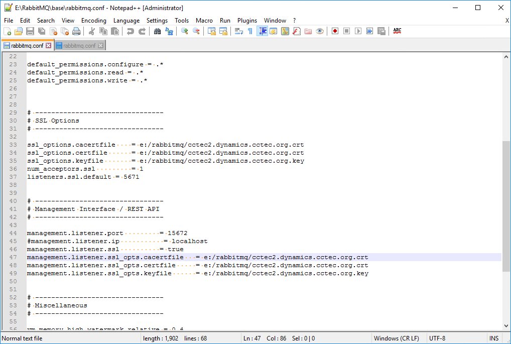 Edit the rabbitmq.conf file located in the rabbitmq\base folder where RabbitMQ was extracted (if using the provided archive).