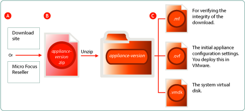 Figure 2-2 Downloading and Preparing Micro Focus Appliances for VMware