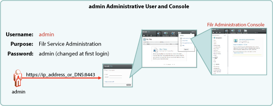 After the appliances are fully operational, most of the administrative work is accomplished using the Filr admin user account.