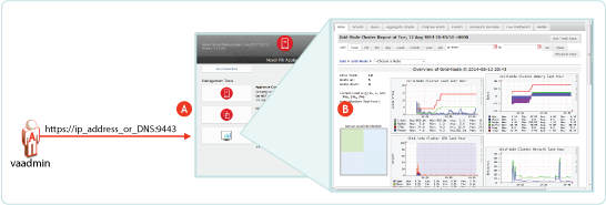 The vaadmin administrative user has access to Ganglia monitoring, via the Appliance Configuration and Maintenance Web page. |