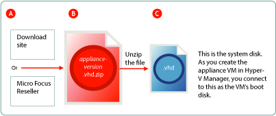 Figure 2-1 Downloading and Preparing Micro Focus Appliances for Hyper-V
