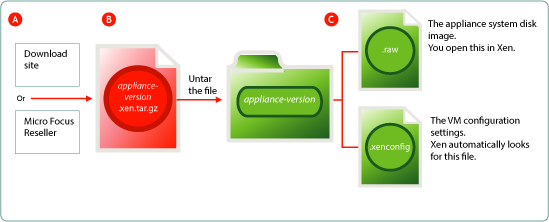 Figure 2-3 Downloading and Preparing Micro Focus Appliances for Xen