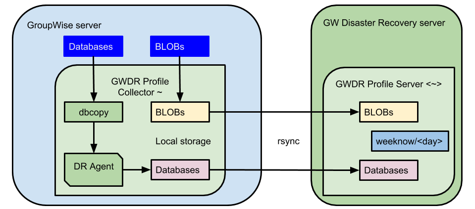 The BLOB files are copied to the GroupWise Disaster Recovery server via rsync.
