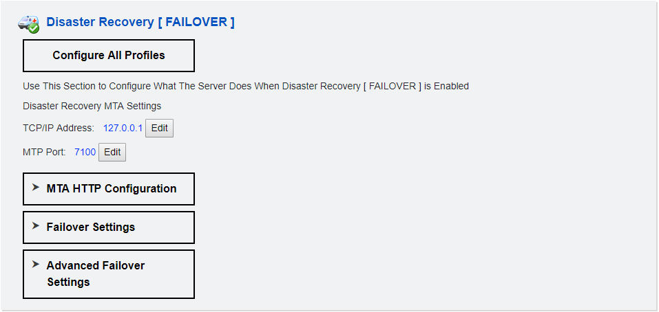 Under the Configure tab, open the Disaster Recovery {FAILOVER] section.