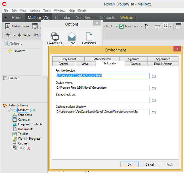 Open the GroupWise client and connect to the POA on the GroupWise Disaster Recovery server