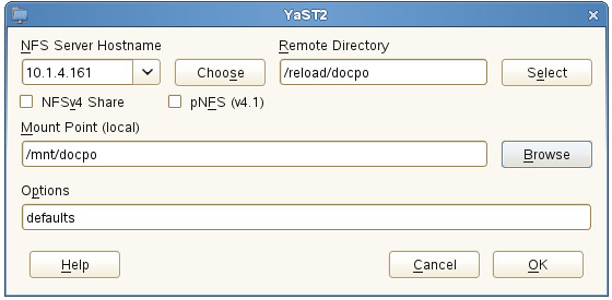 Set the NFS server host name to the GroupWise Disaster Recovery server IP address or host name.