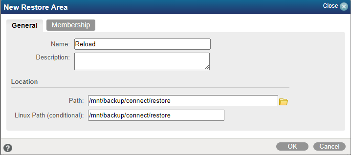 Set the Path and Linux Path to the mount point adding /connect/restore. For example:
