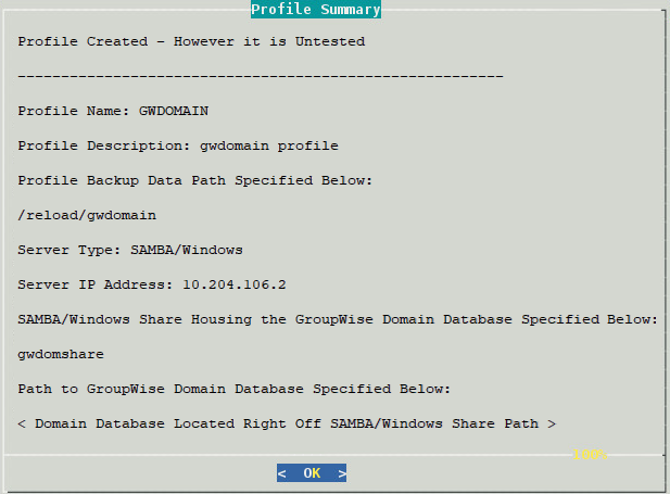 Create a domain profile for SAMBA/Windows on the GroupWise Disaster Recovery Server. You should have already created a backup directory. For information, see Create a Backup Data Directory on the GroupWise Disaster Recovery Server.