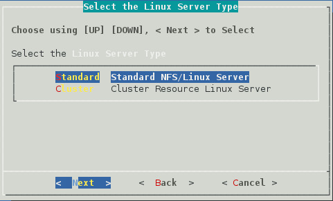 Select Linux server type Standard: Standard NFS/Linux Server.