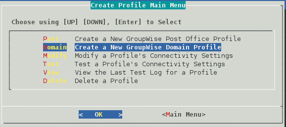 Select "Domain (Create a New GroupWise Domain Profile)"