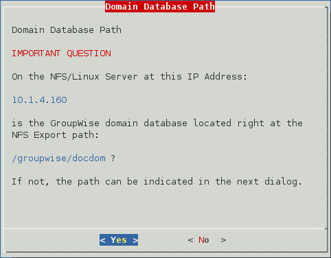 Enter the NFS Export Path on the GroupWise server from above. For example: /groupwise/domain