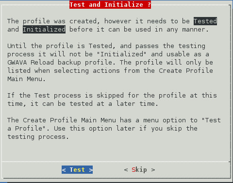 The Test and Initialize page allows you to finalize the profile by selecting Test.