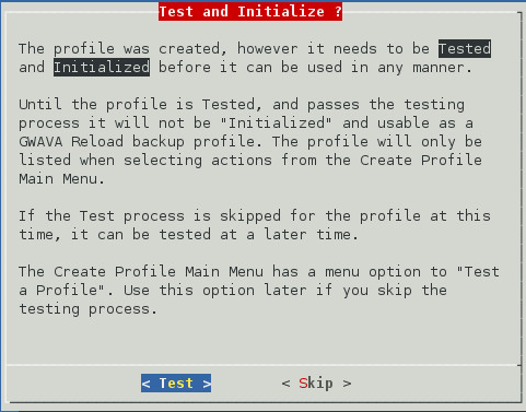 The Test and Initialize page allows you to finalize the profile by selecting Test.