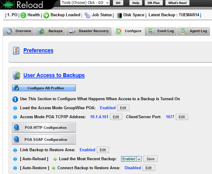 Once Reload has been installed, profiles created, backups saved and Restore Areas setup, additional configuration tasks may be completed.