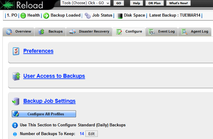 This setting is found in the Reload Web Administration under the Profile configuration | <select desired profile> | Configure | Backup Job Settings | Number of Backups To Keep