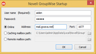 Reopen the GroupWise Client and connect to the POA on the Production GroupWise server