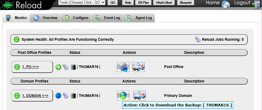 Browse to Reload Web Administration Console | <Profile> | Click to Download the Backup action button