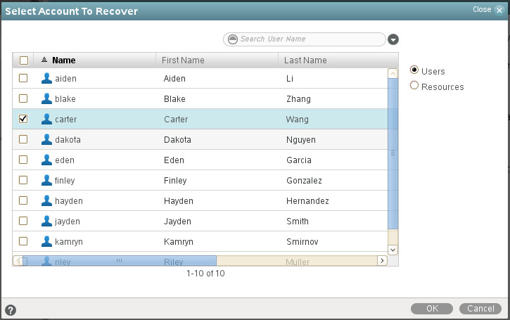 Select the user to be restored