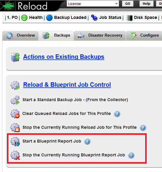 When Blueprint is installed a report job will run. Report jobs will also run after backup jobs or when you select a report job to start.