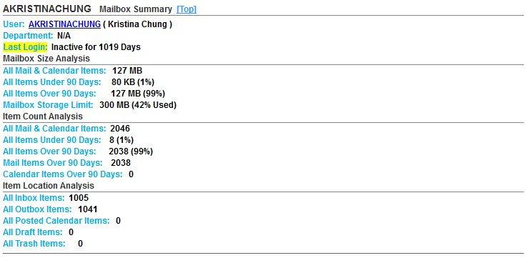 The Users report contains and analysis of each user in the post office.