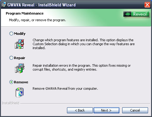 Launch the GroupWise Forensics set up executable. Click the Remove radio button. Then, click Next.