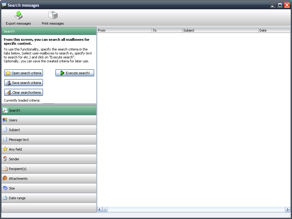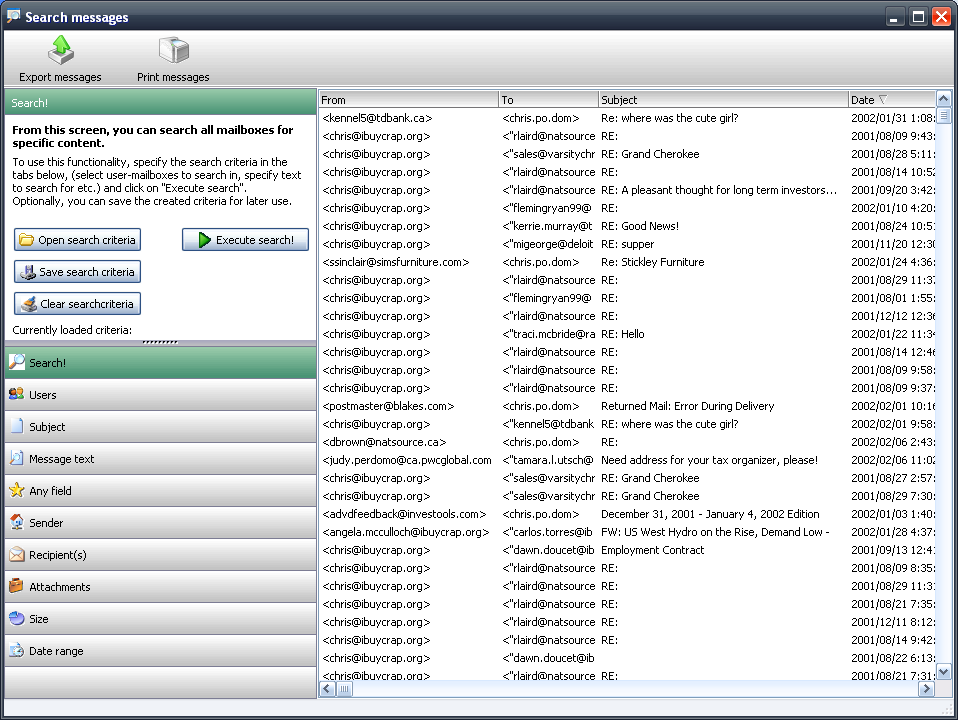 From this screen, administrators can search for any content, attachment or element of any e-mail.