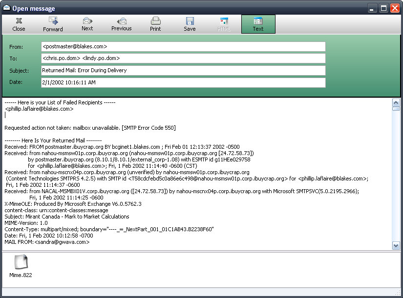 Click on a mail message to read or export. Note that for any message attachments, the attachments still require their programs. For example, to read a Microsoft Word document that was attached to a mail message, you must have Word installed.