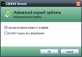 Messages can either be exported in MIME, or Advansys Archive To Go format. The export utility asks where to export the files to, and defaults to the C:\reveal export directory.