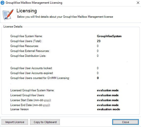 When initially installing GWMM, there is a 30 day Evaluation license to try the software. Multi-User functionality will be reduced.