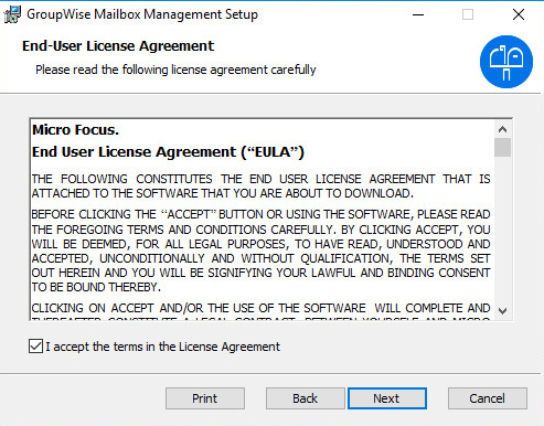 Now that GroupWise Mailbox Management has gathered the required information for the install, you can continue.