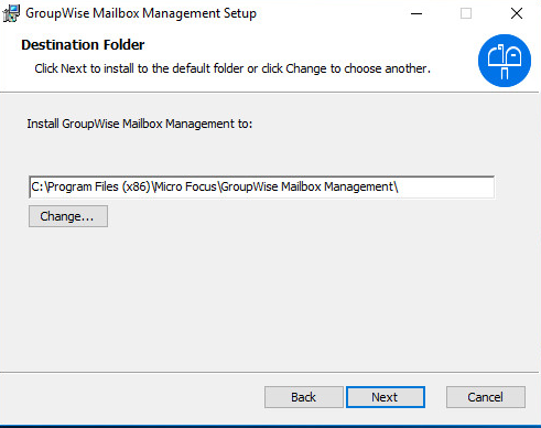 GroupWise Mailbox Management allows you to select the install location. By default, GroupWise Mailbox Management will be installed to the path shown.