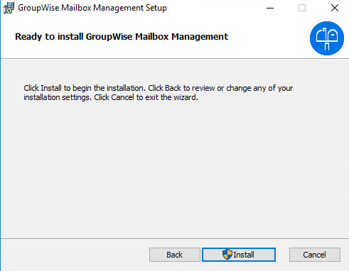 GroupWise Mailbox Management will not start the install process until you click Install on the following installation window.