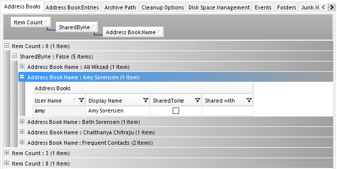 Moving the different column headers to organize the results to a workable amount of data, and knowing where to move them to gain the best results, will depend entirely on the data desired and the system that GroupWise Mailbox Management is managing.